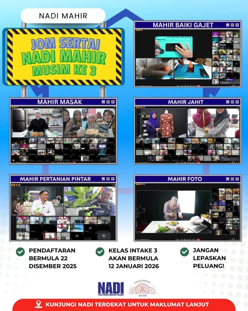 Salam semua π π’ *Pendaftaran Intake 3 Program Mahir akan dibuka bermula 22 Disember 2025 (Isnin)* π Peserta yang berminat, sila kunjungi NADI berdekatan π© β¦
