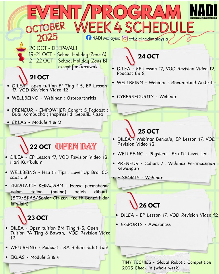 Jom sertai pelbagai aktiviti menarik sepanjang minggu ini di NADI Taman Sukma!