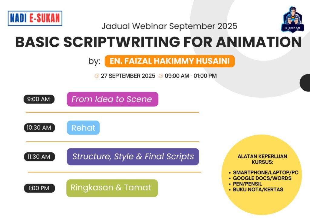 âšī¸ Siri Webinar ini akan berlangsung hingga Disember 2025 (tajuk lain: 2D Animation for Beginners, Visual Storytelling â From Idea to Pitch, Basic Storyboarding).