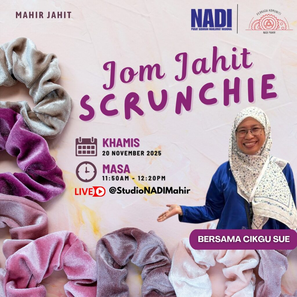 Jom Jahit Scrunchie Comel & Mudah! ๐ Nak belajar cara paling simple untuk hasilkan scrunchie DIY yang cantik & boleh dijual? Jom join sesi 30 minit yang padat dengan teknik, tip dan tunjuk ajar ringkas!
