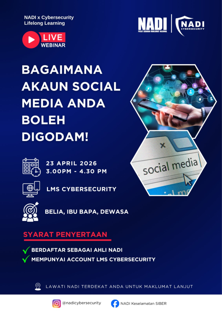 Anda dijemput untuk menyertai webinar menarik anjuran NADI x Cybersecurity Lifelong Learning: